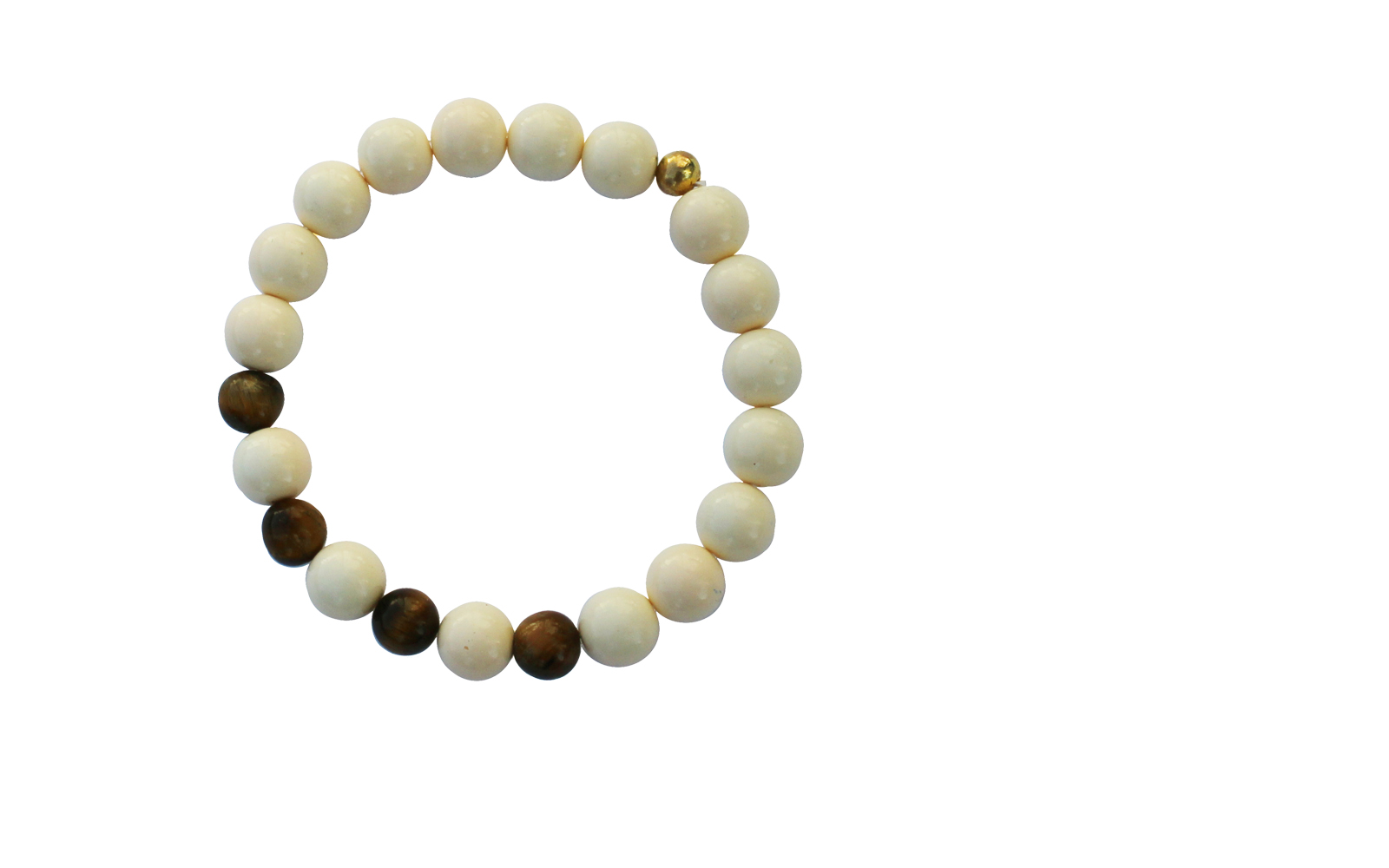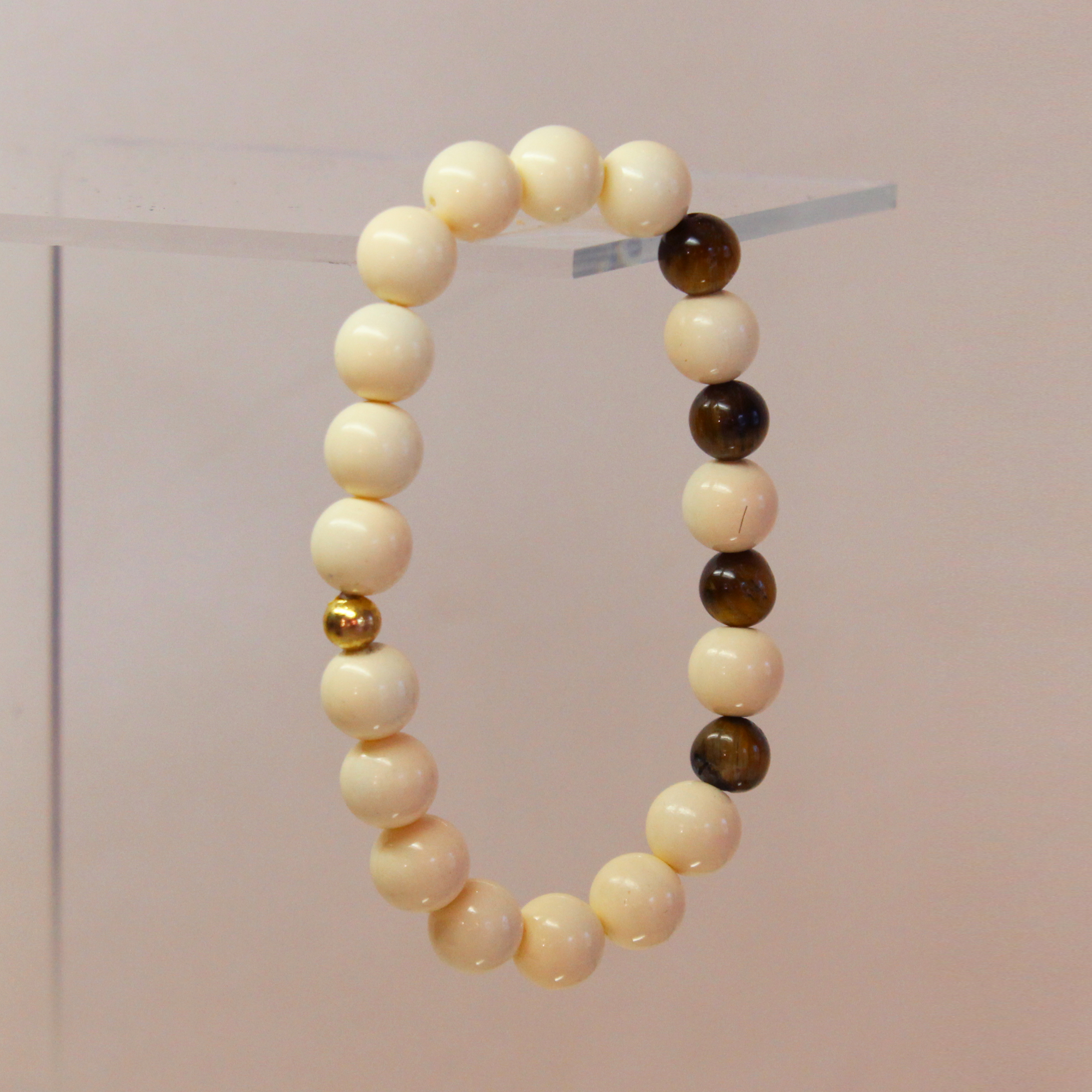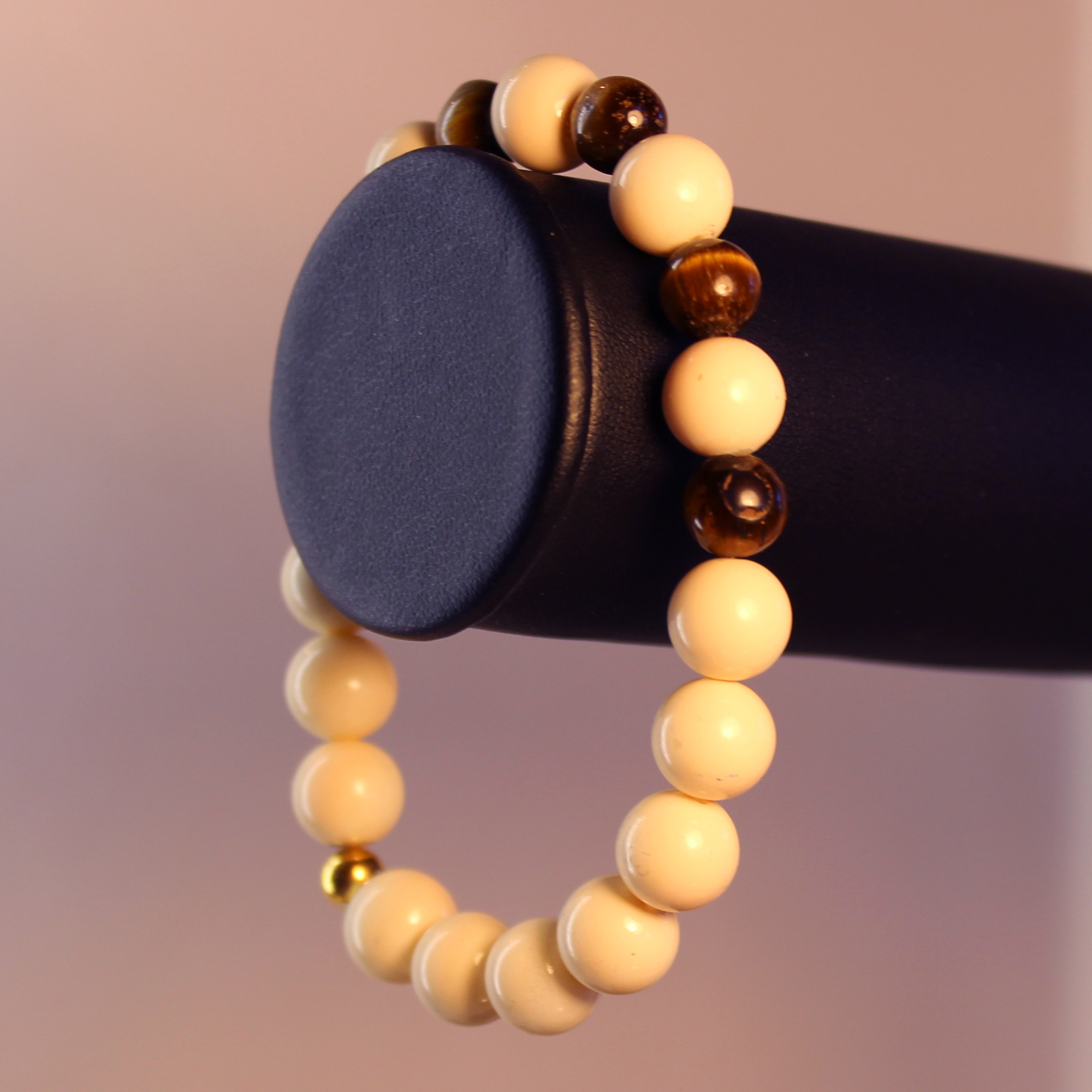 10mm ivory jade beads; 8mm tiger eye, gold finding