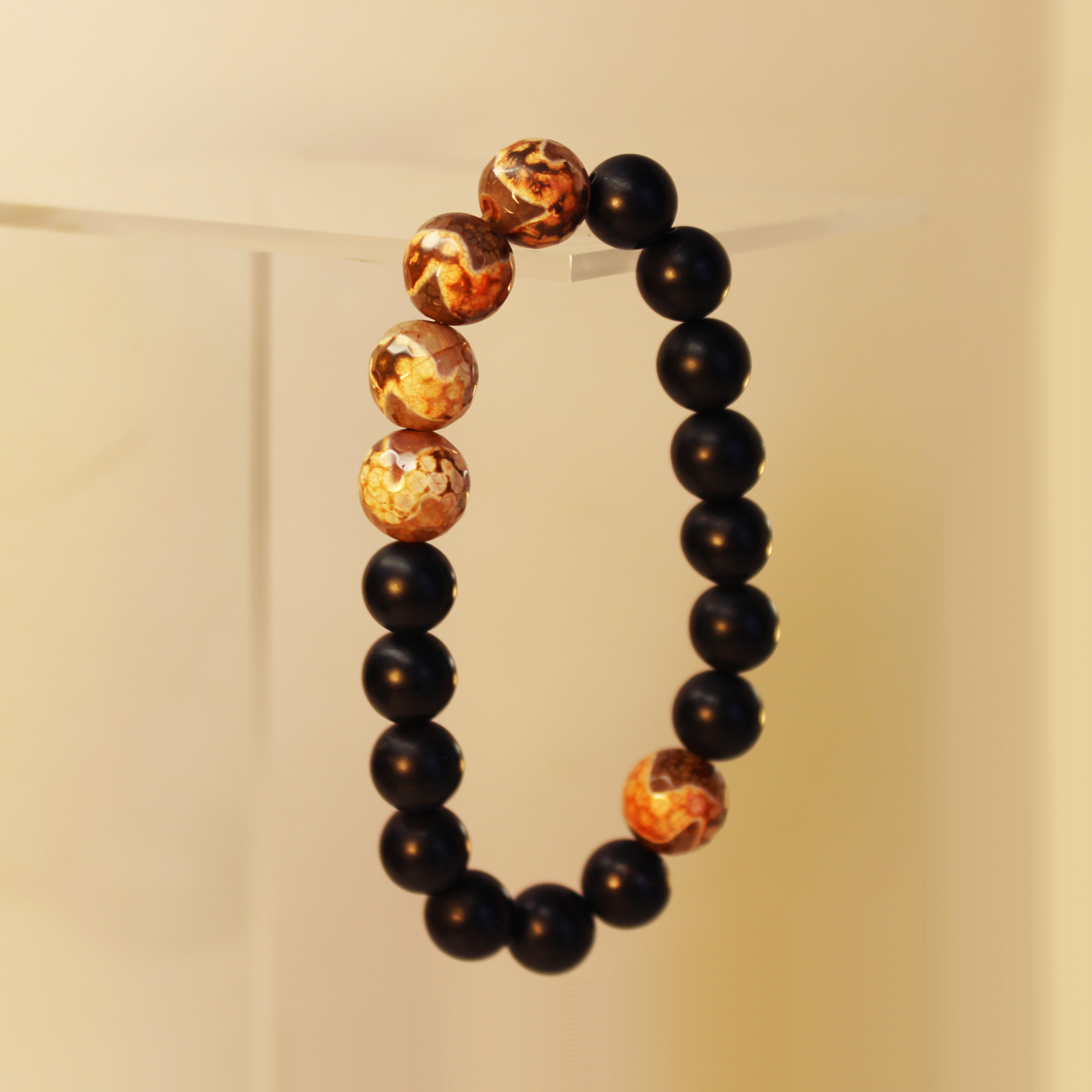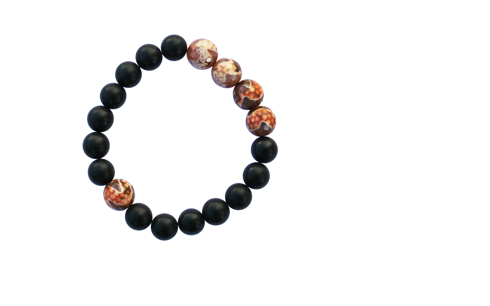 10mm smooth matte onyx beads; 12mm faceted agate.