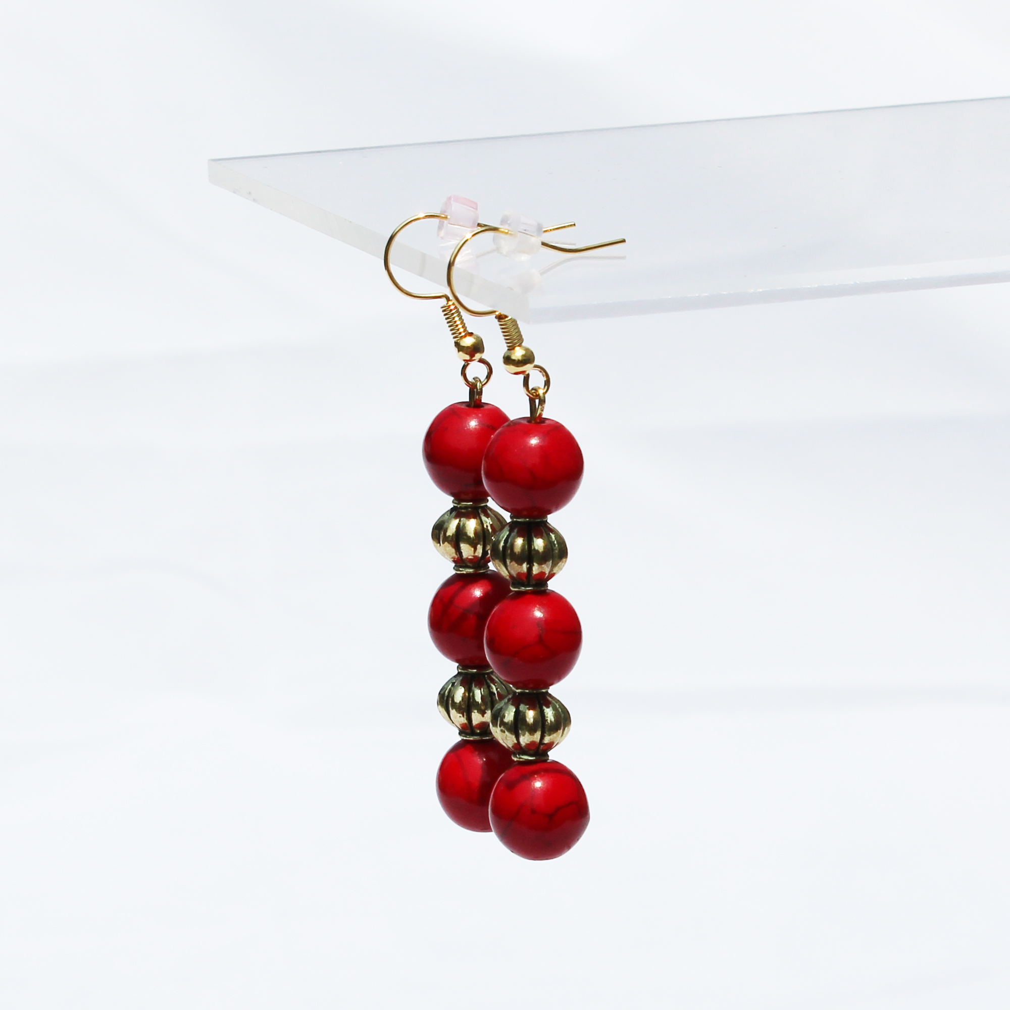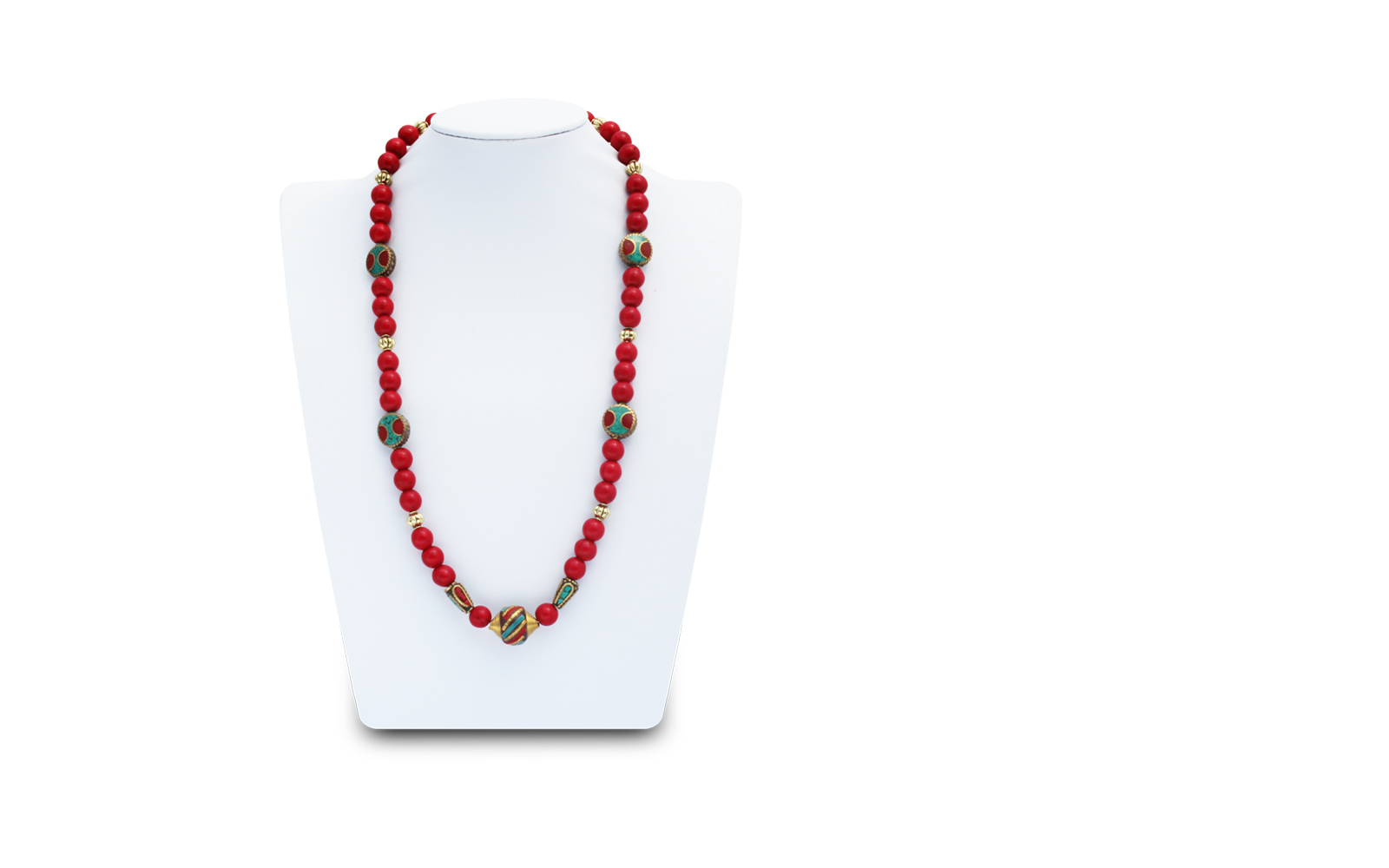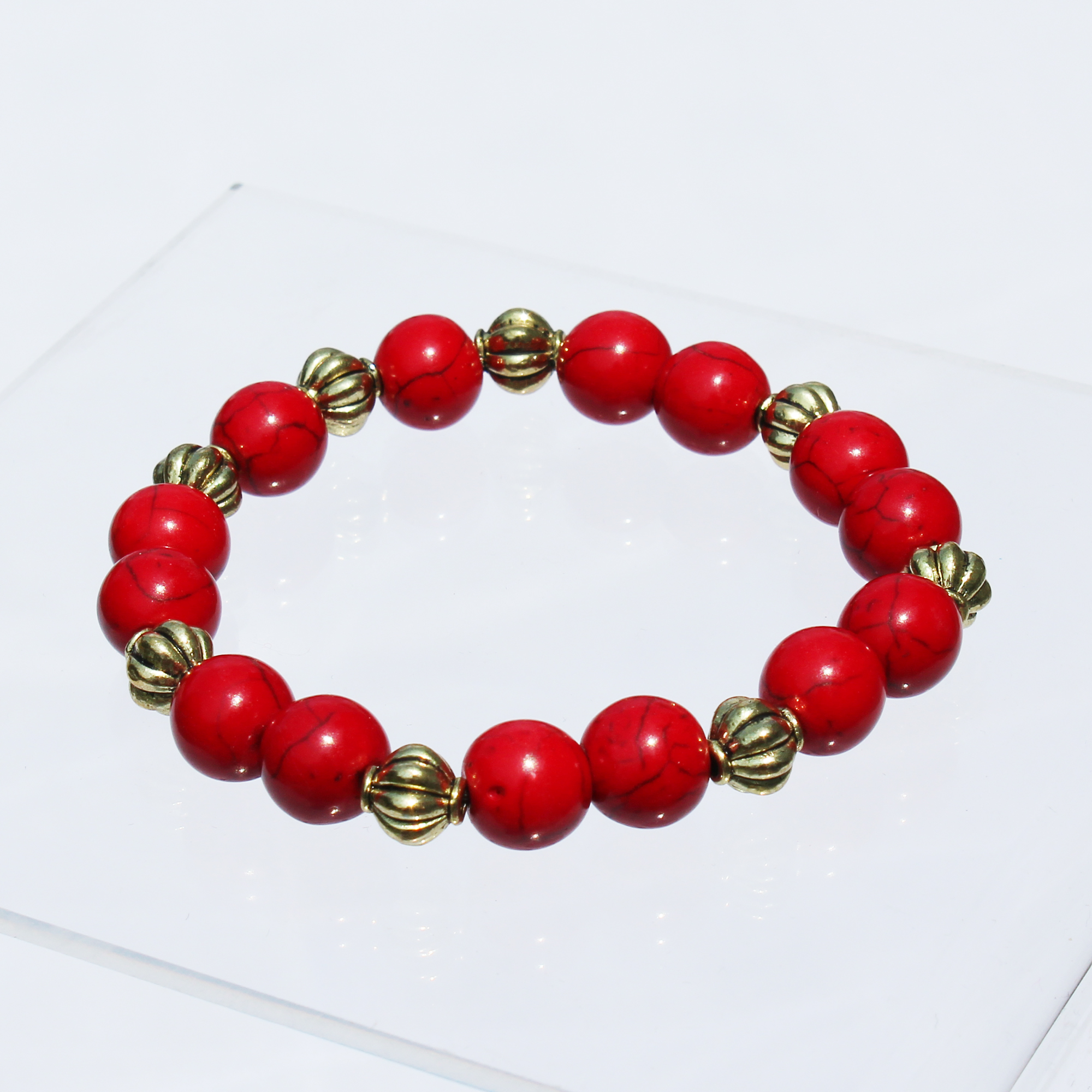 10mm red howlite beads, gold findings, coral/turquoise tibetan beads, gold magnetic clasp.