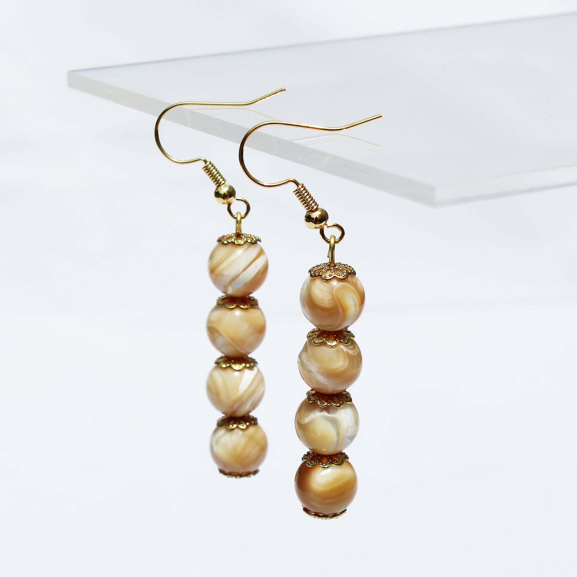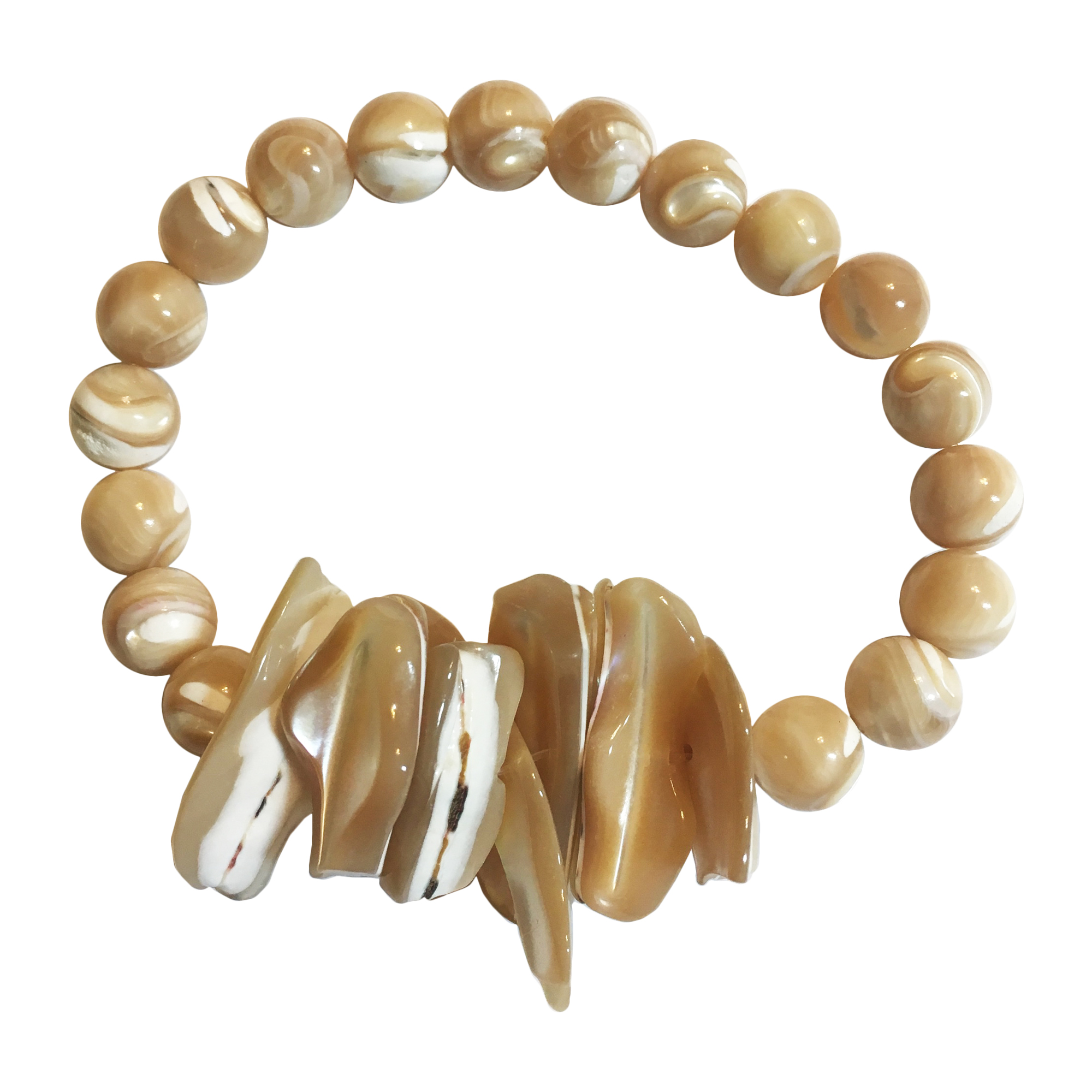 Large mother of pearl shell chip beads, 8mm beads,pave bead, golden/cream tassel, gold lobster clasp.